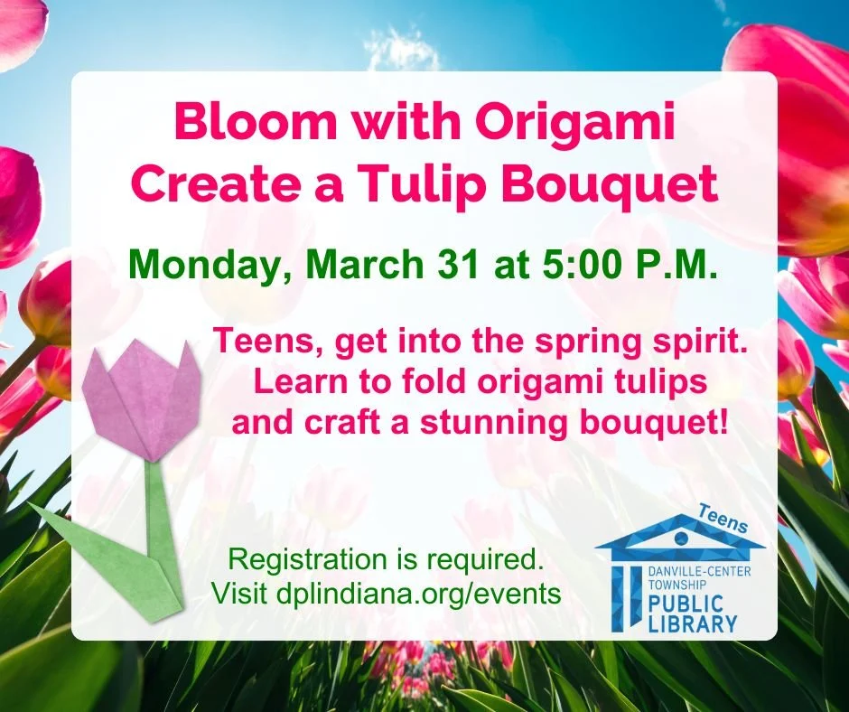 Bloom with Origami: Create a Tulip Boquet Monday, March 31, 2025 3:00 PM 4:00 PM Google Calendar ICS Register